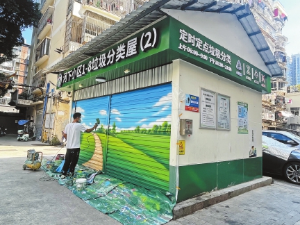 据悉,今年国庆前,全市387座分类屋(亭)将通过彩绘、垃圾分类主题海报实现造型美化提升,原本单调的垃圾投放点变身科普宣传小阵地。“前期,我们筛选出以绿色为主色调,以蓝天白云、花草树木等为创作元素的彩绘样板,让分类屋(亭)既成为社区‘风景线’,也潜移默化地推动垃圾分类成为低碳生活新时尚。”市城管委环卫中心工作人员介绍。