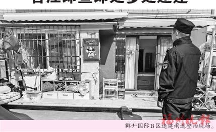 群升国际B区违建雨遮整治现场。