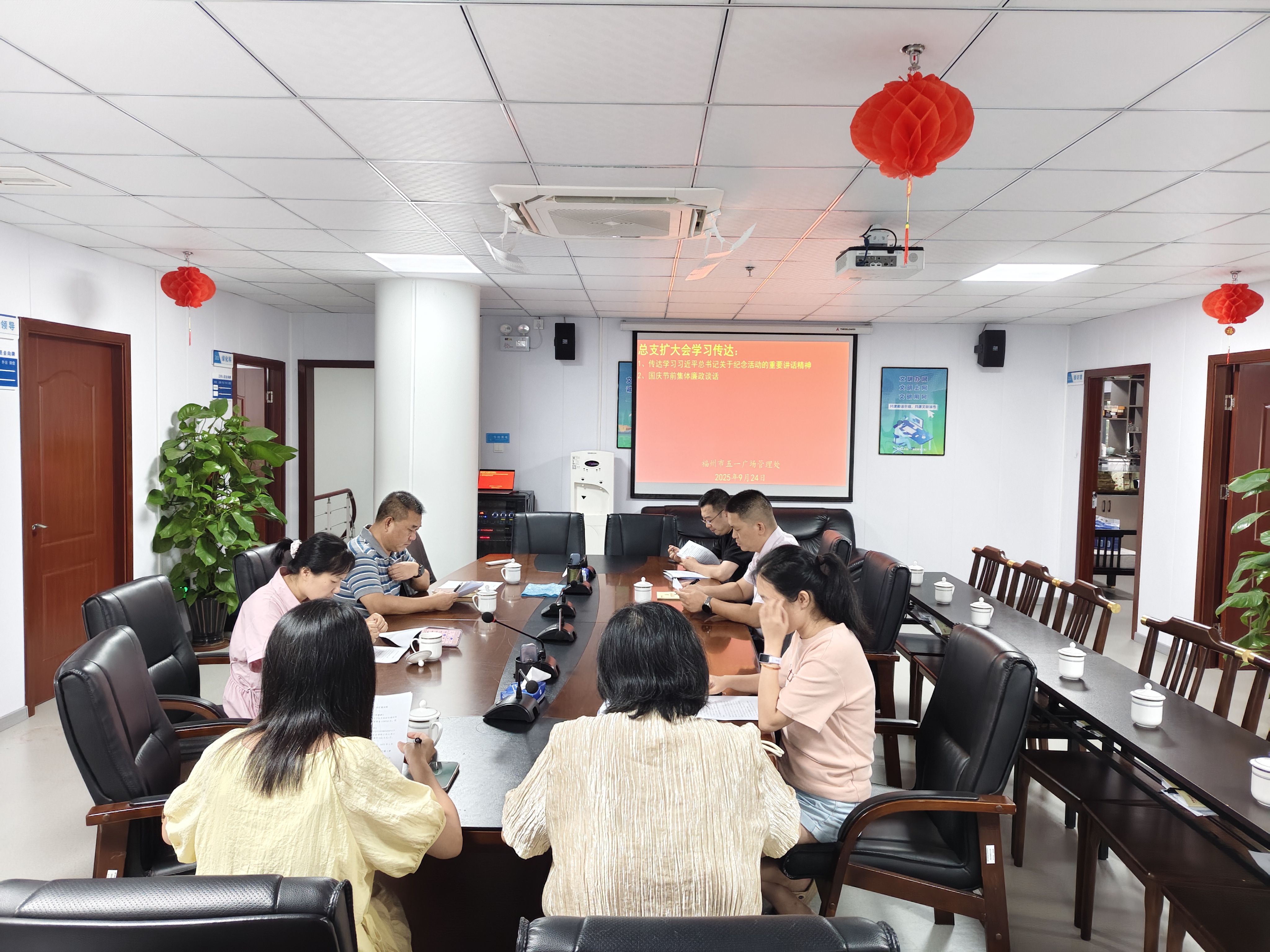 为深入贯彻全面从严治党要求,切实筑牢党员干部廉洁自律思想防线,确保国庆、中秋“双节”期间广场管理工作风清气正。近日,五一广场管理处组织开展节前集体廉政谈话,党总支书记、主任游永文主持会议,全处党员干部参会。