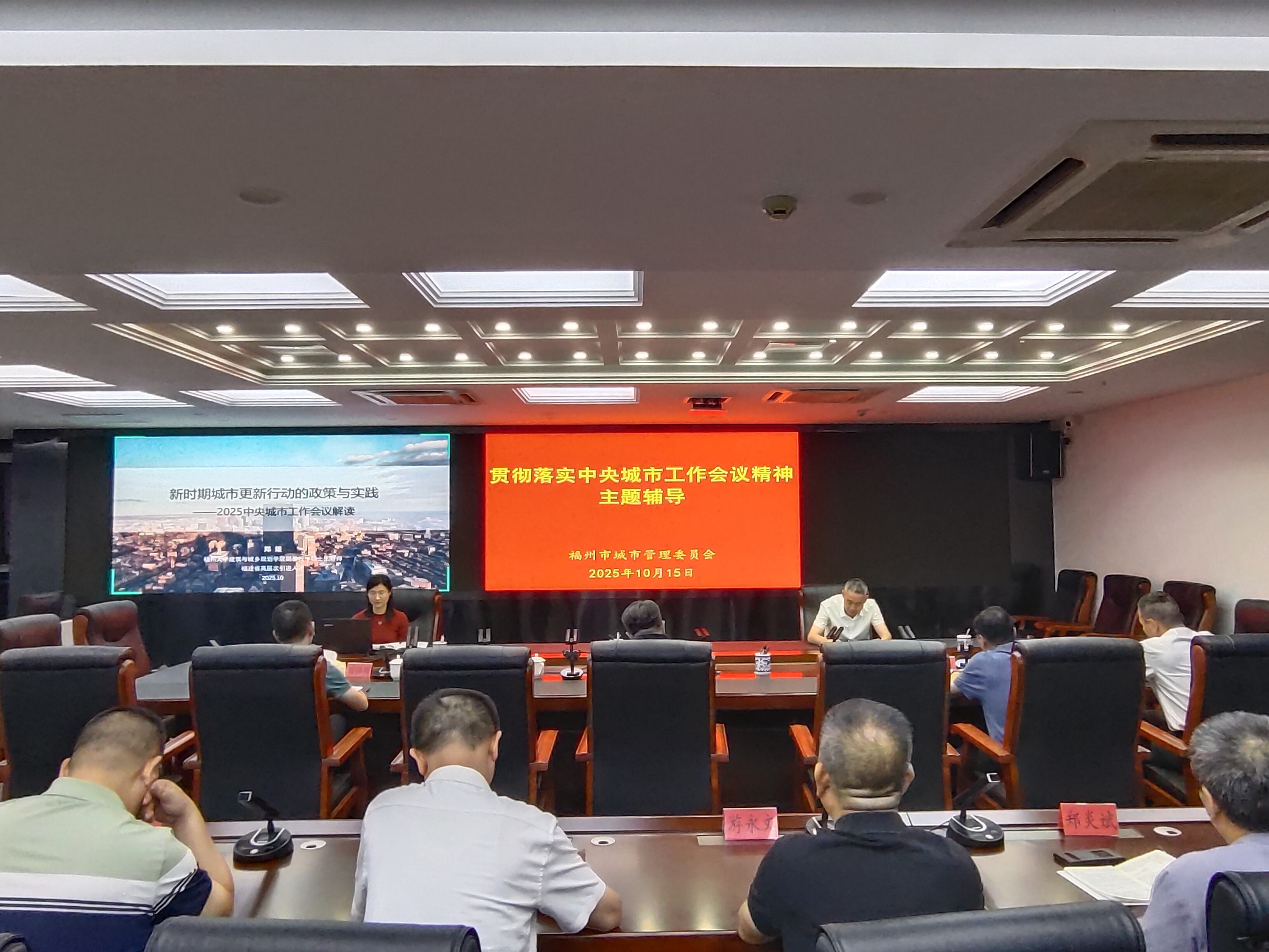党的二十大报告指出:“坚持人民城市人民建、人民城市为人民,提高城市规划、建设、治理水平,加快转变超大特大城市发展方式,实施城市更新行动,加强城市基础设施建设,打造宜居、韧性、智慧城市。”为进一步落实党的二十大精神和中央城市工作会议精神,10月15日,市城管委举办了“新时期城市更新行动的政策与实践——2025中央城市工作会议解读”主题辅导课。委系统处级干部、委属单位班子成员、委机关一、二支部党员干部、委系统党支部书记共80余人参加学习。
